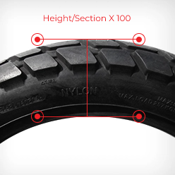 The aspect ratio is calculated as the sidewall height expressed as a percentage of the tyre width. So, a tyre with an aspect ratio of 70 is a tyre whose sidewall height is equal to 70% of its width (98mm here).