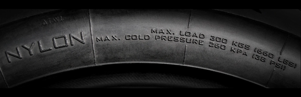 Provides details of the structure of a tyre and indicates maximum air load that can be carried by the tyre.