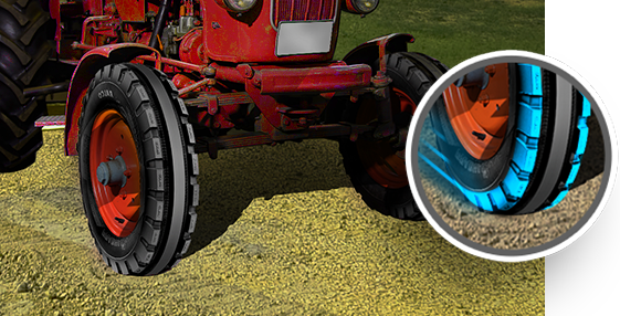 A higher land-sea ratio gives the tyre better stability and traction both in haulage application and in agricultural use.